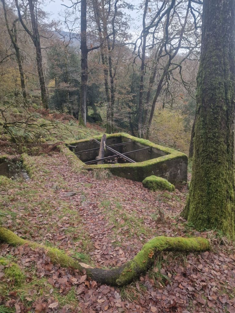 Concrete water reservoir. Ancient temperate rainforest woods in the UK are not untouched by human intervention. Most have always been part of living, changing landscapes formed by human-nature interaction.