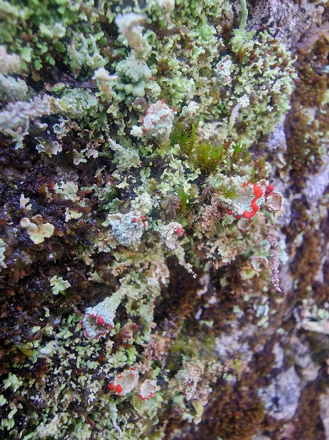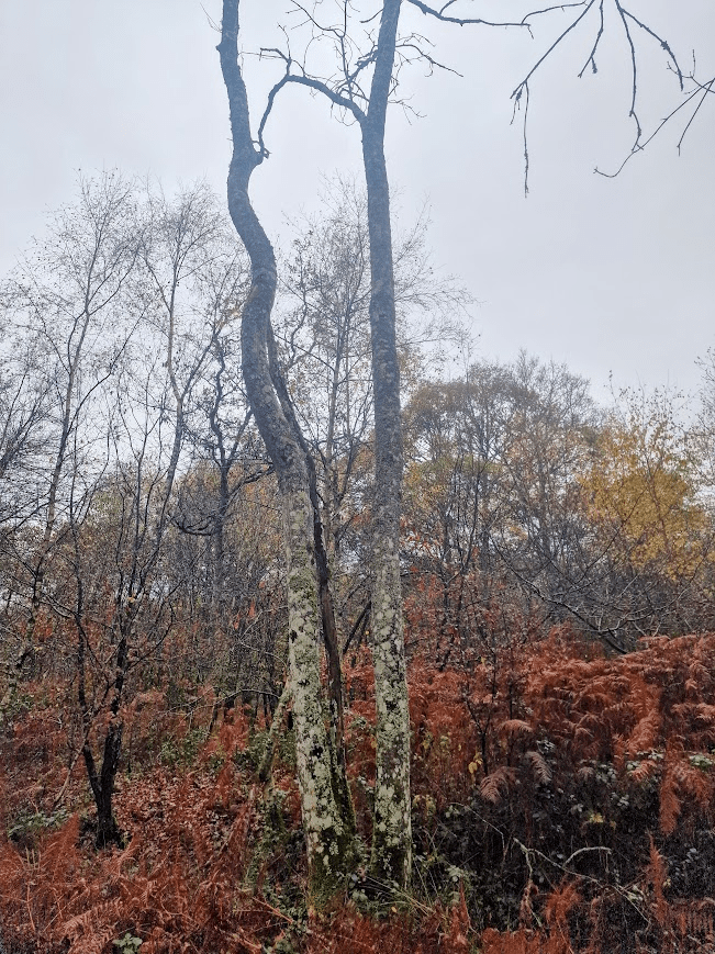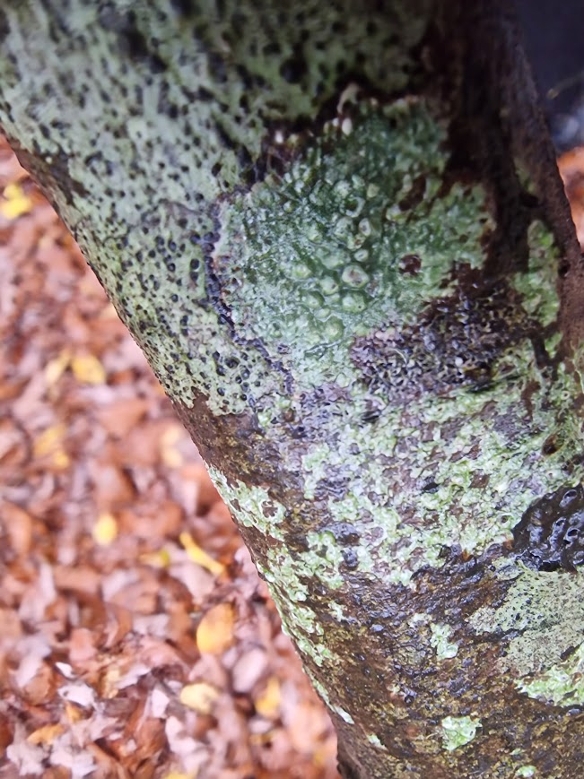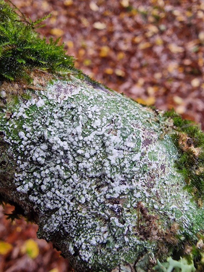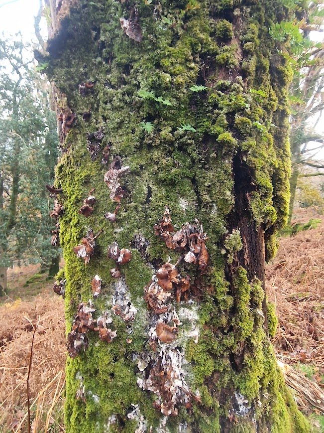 The white bark is probably lichens of the Mesic bark community (the Pertusarietum). I am very used to this community, as it is common in the south, especially in parkland trees and trees at the edge of woods. I thought it unusual to see this in the Lake District but I did some research and found that whist it is largely southern community in the UK, …. [there is] a very important stronghold in the Lake DistrictPlantlife: Lichens and Bryophytes of Atlantic Woodland in the Lake District