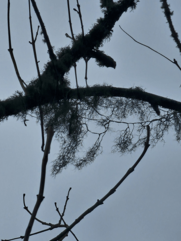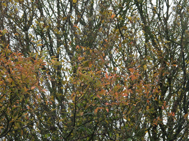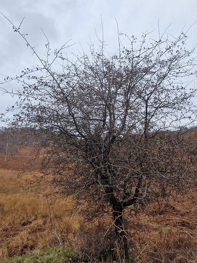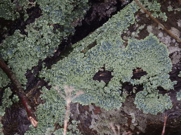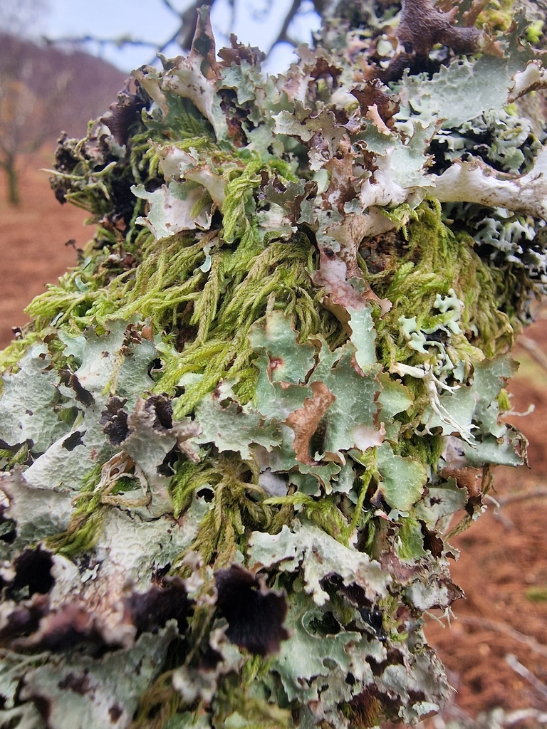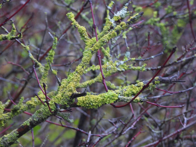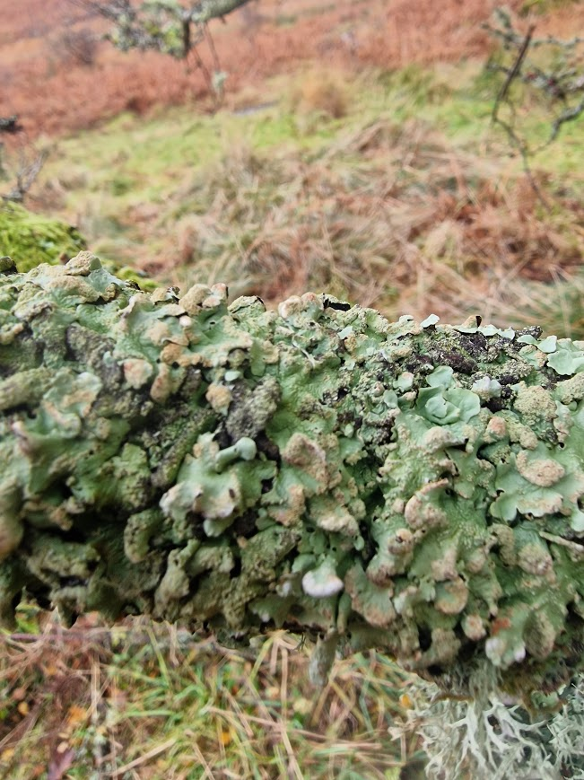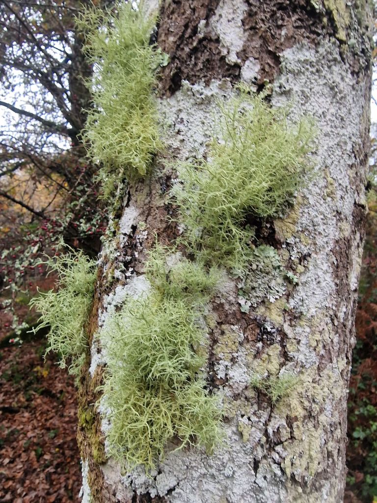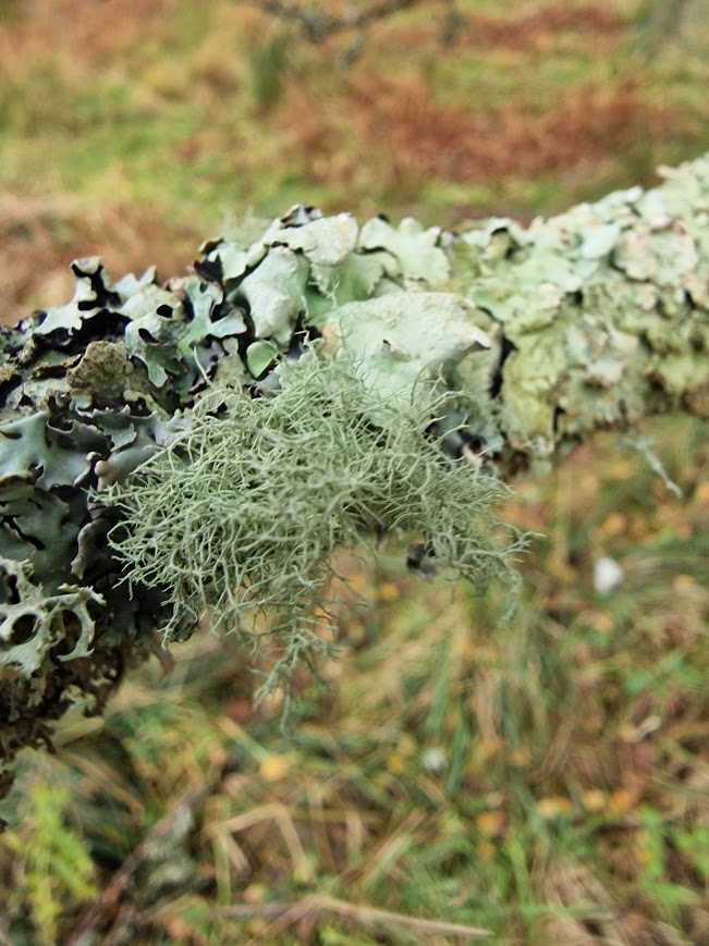 Hawthorns; as in Sussex, often have abundant (bit different) lichen. Sussex Hawthorns are dominated by Ranalina spp.lichens with few or no Usnea spp. Upland north-west Hawthorn often have more Usnea. On these hawthorns Usnea floridana is relatively common; it is very rare on South East hawthorns