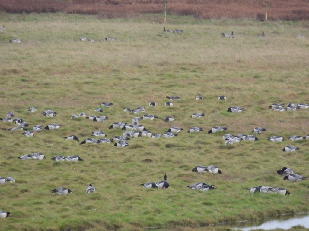 Some of the 1000s of Barnacle Geese by the flood planes of the Solway from the Salcot Merse Hide.
