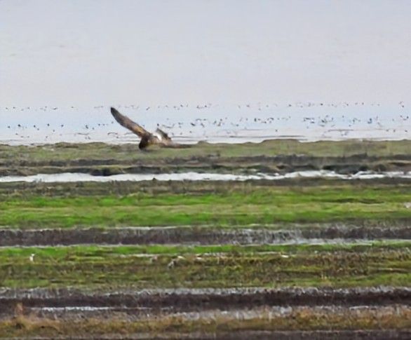 A Hen Harrier attack. A pair of Hen Harriers, Circus cyaneus, were sitting on posts near the Solway. The male flew off – probably to catch a Meadow Pipit or a rodent, and it spooked the Barnacle Geese