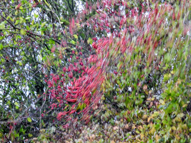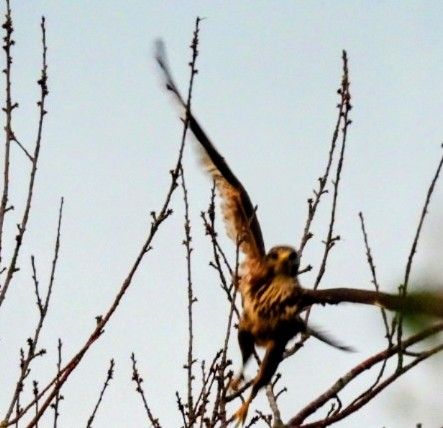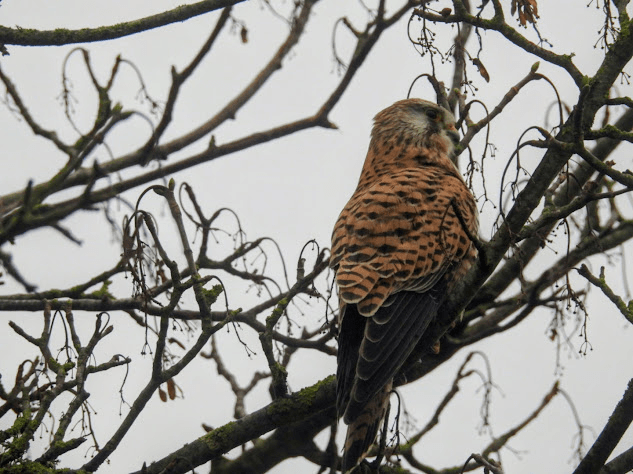 Near the bus stop I saw a raptor flying low across a field. It settled in a Hawthorn for a few seconds and flew up. This was the best shot I got; it’s probably a Buzzard, Buteo buteo
