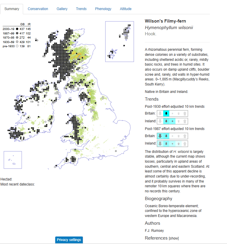 Wilson’s Filmy Fern has a similar distribution to Tunbridge Filmy Fern