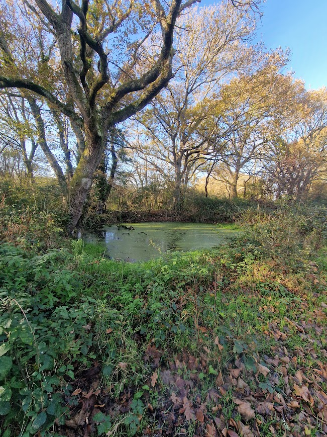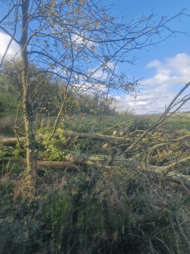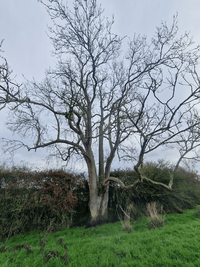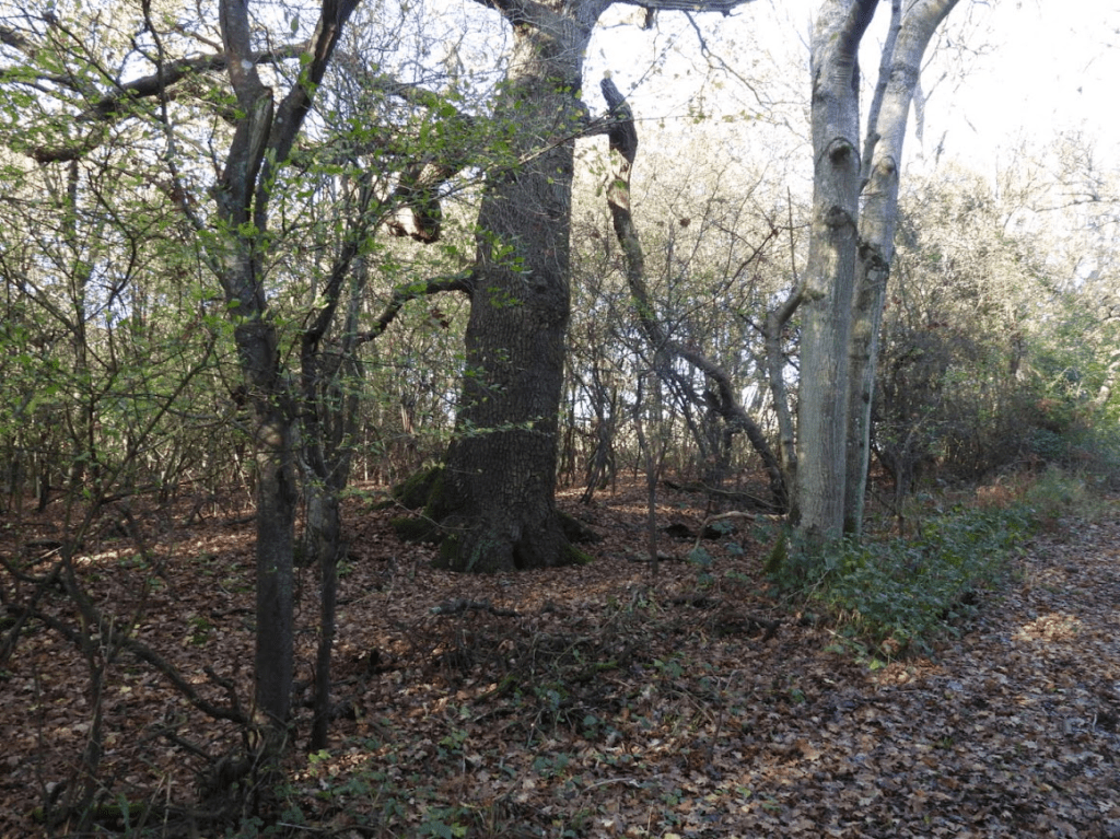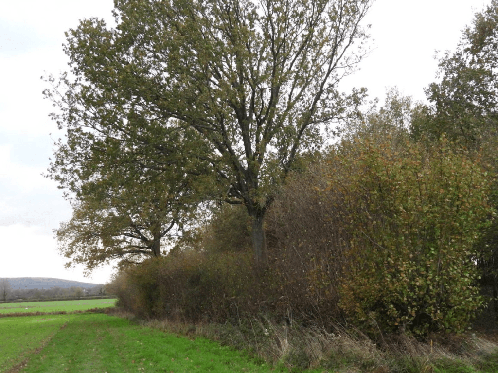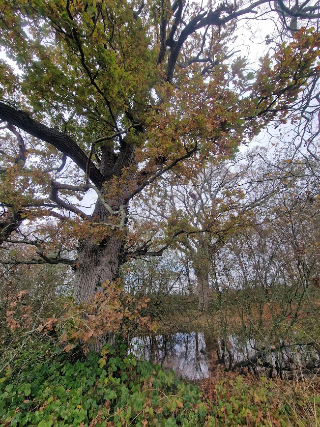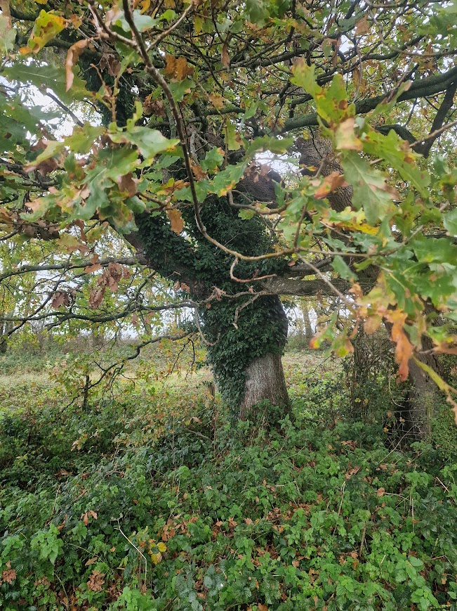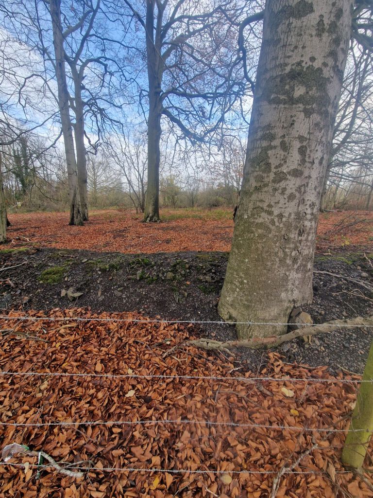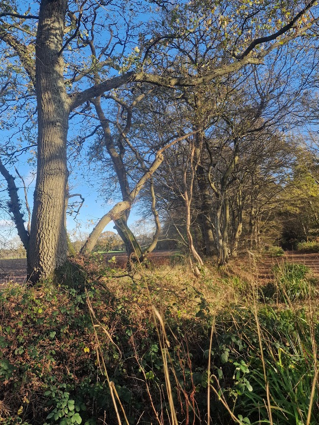 The Devil’s Ditch consist of a banked ditch, the bank being wooded mostly with Pedunculate Oak and Field Maple