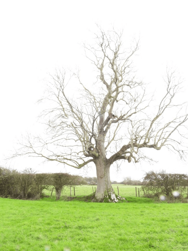 The park was surrounded by a park pale, a ditch on the inside and an earth wall on the outside on top of which was a pale fence of cleft oak. The deer could not scale such a barrier from inside the park, but ‘deer leaps’ could lure them in from outside, a clever construction. … Also inside was usually a park or hunting lodge and if this building was moated we can often still recognize this moat as well as lines of the park pale in the form of lanes, field boundaries or even the earth wall of the park pale. We now know where most of these parks were even if few of these traces remain. By analyzing the position of ancient oaks in the landscape we can find out if they stood in a medieval deer park.