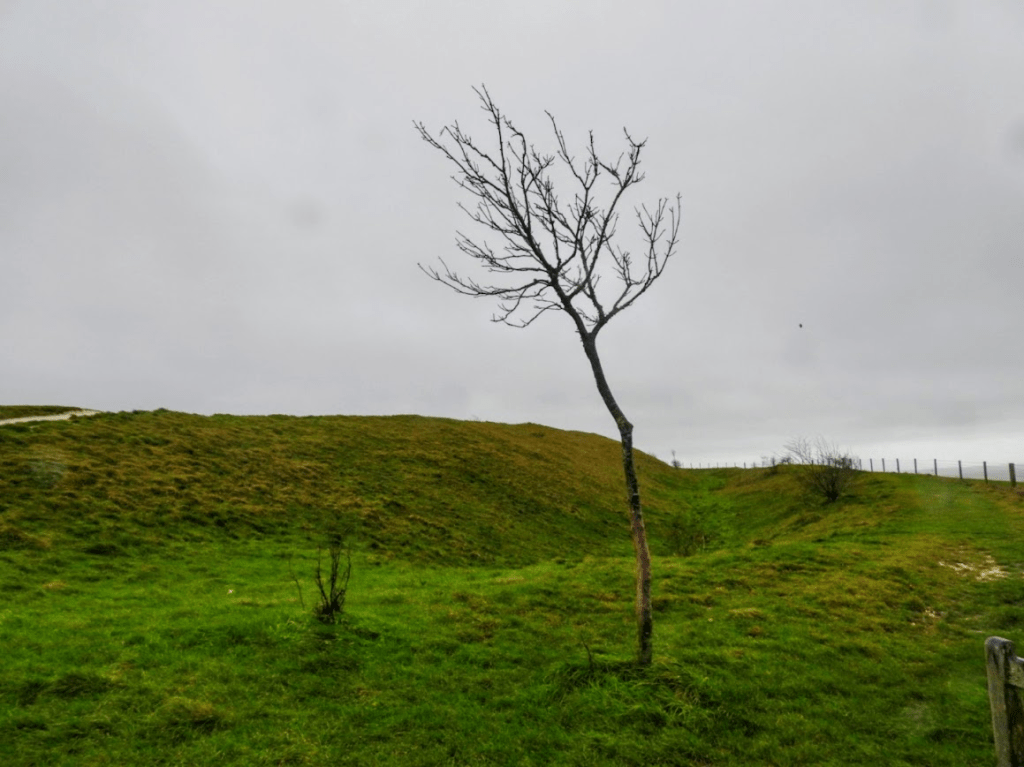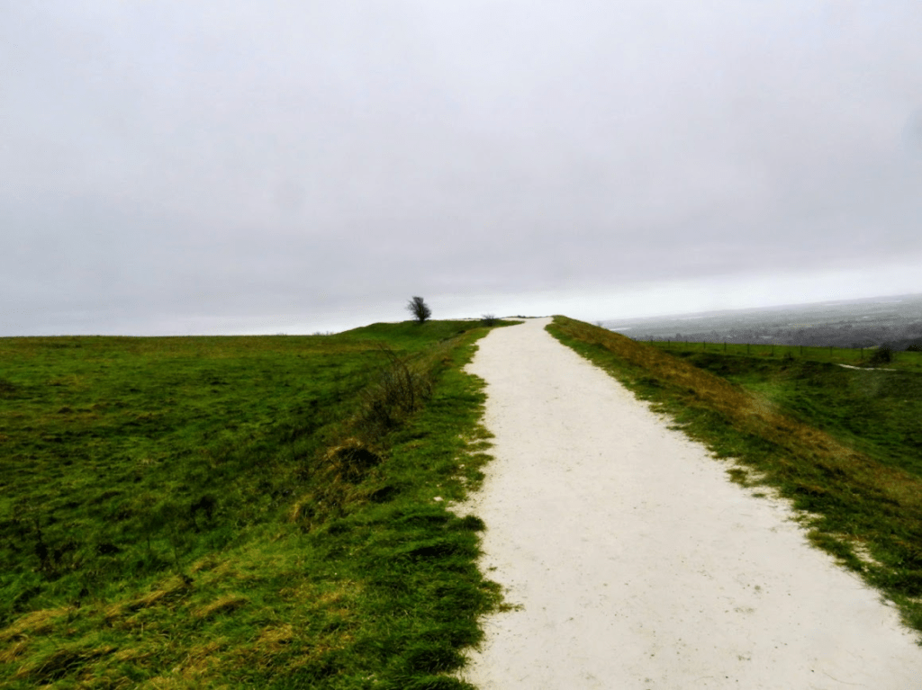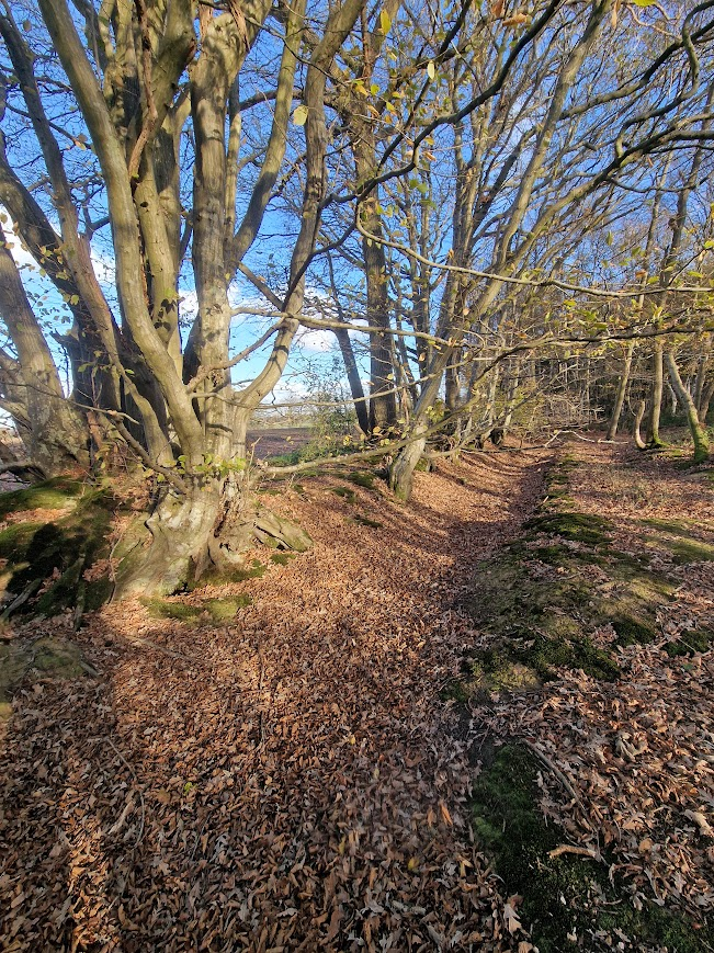 Stane Street linked London (Londinium) to Chichester (Noviomagus Reginorum); and runs through the South Downs. Stane is an old spelling of “stone” (Old Norse: steinn) which was used to differentiate paved Roman roads from muddy native trackways. At Halnaker Hill, Stane Street becomes a “tree tunnel”; which is famed on social media, with may photographs like mine below. There are far better photos of the tree tunnel than mine; just Google Halnaker Tree Tunnel and you will see them. Whilst the Halnaker Tree Tunnel is beautiful, from my experience of walking in Sussex there are far more beautiful and historically significant sunken trackways (hollow-ways) in Sussex than this tree tunnel; but for some reason Halnaker Tree Tunnel has “gone viral”; which shows how social media can distort public attention to what is important in the country side.