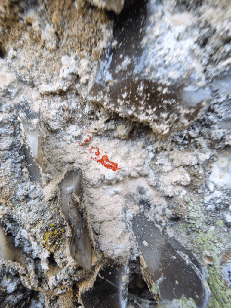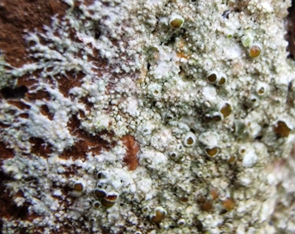 The occasion of the Second World War added to the historic melange of Boxgrove Parish’s Halnaker Hill concrete and octagonal brick structures which formed the base of searchlight emplacements. All that remains of these structures is parts of the bases; this are particularly ugly but are of historical importance and are listed by Historic England However, the brick and concrete does provide a substrate for some beautiful lichens e..g the very common Lecanora campestris which I photographed there on 07/12/2024