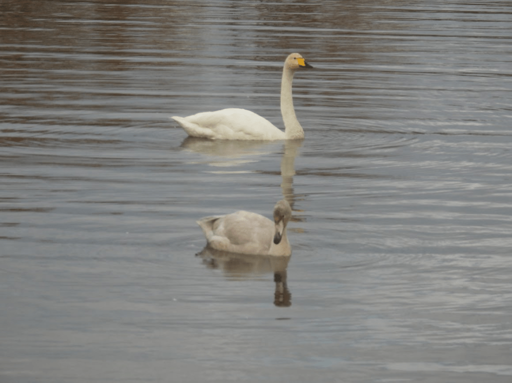 This parent Whooper Swan and its cygnet, were fascinating to watch. The parent did something (e.g. preen, dabble for food), then cygnet did it; learning through mimicry. This cygnet was probably born in Iceland. First time in Scotland.