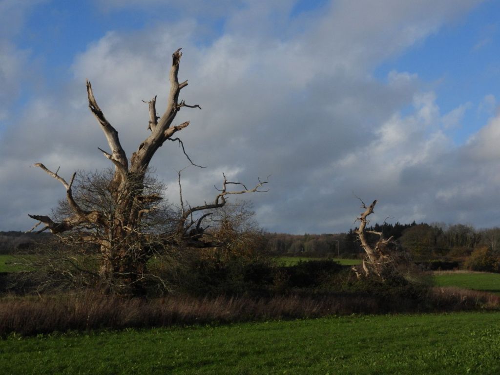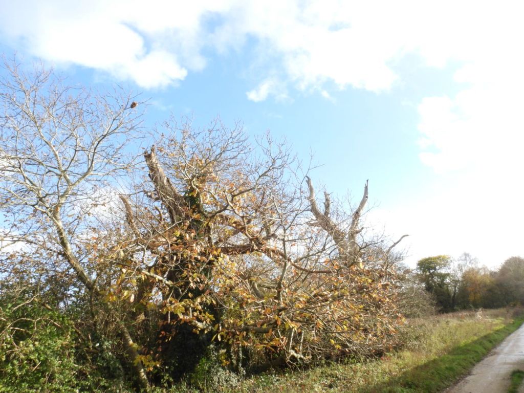 On a recent trip to the parish of Boxgrove, I walked up the footpath to the west of Halnaker Park, an ancient deer park. Most deer parks have mostly pollarded Oaks, but this one has mostly Sweet Chestnuts. Some other deer parks have Sweet Chestnuts too; such as Bushy, Richmond and Petworth; but in these Oaks domiate; at Halnaker Sweet Chestnut dominates. The Sweet Chestnuts in the park are magnificent; but close-up examination of those by the path revealed them to be in a parlous state.
