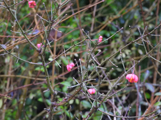 As I was walking to a hide I saw a flock of Redwings, Turdus iliacus, and Fieldfare, Turdus pilaris; the UK’s “winter thrushes” that migrate from Scandinavia. They were eating Hawthorn haws.