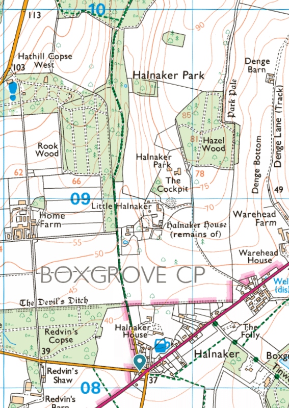 A fascinating man-made feature of the parish is the octagonal reservoir in the Halnaker House. This is not accessible publicly. The OS map calls it a cockpit; but it may not have been.