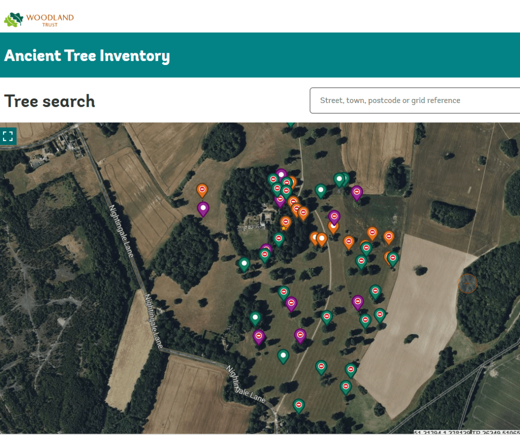 The Sweet Chestnuts are listed by the Woodland Trust Ancient Tree Inventory as all ancient.