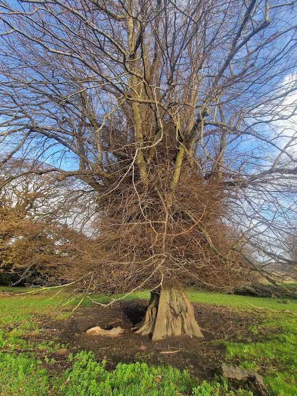 On the Woodland Trust Ancient Tree Inventory map all but the trees next to the footpaths are marked as “no public access” but except for the woodland around Fredville House, which is fenced, I roamed freely off the the paths and got close to many of the trees that the Woodland Trust says has no public access. Toward the end of the afternoon a stream of 4x4s drove up the road into Fredville House. They were a hunting party, of shootists and game keepers (as I had heard shotguns being used all afternoon, close by, but not in Fredville Park); none of them challenged me and I was clearly off the public footpaths.