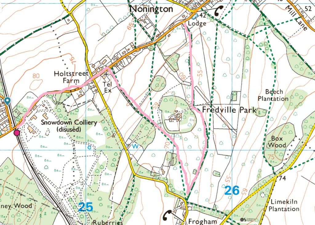 It is not possible to see the three large ancient oak trees, “Majesty”, “Stately”, and ”Beauty”probably 500 years old, including “Majesty” or “The Fredville Oak”, believed to have the largest girth in England, because they are in the fenced of grounds of the former mansion. This is another example of precious natural assets that should be viewable by the public, being shut off to the public.