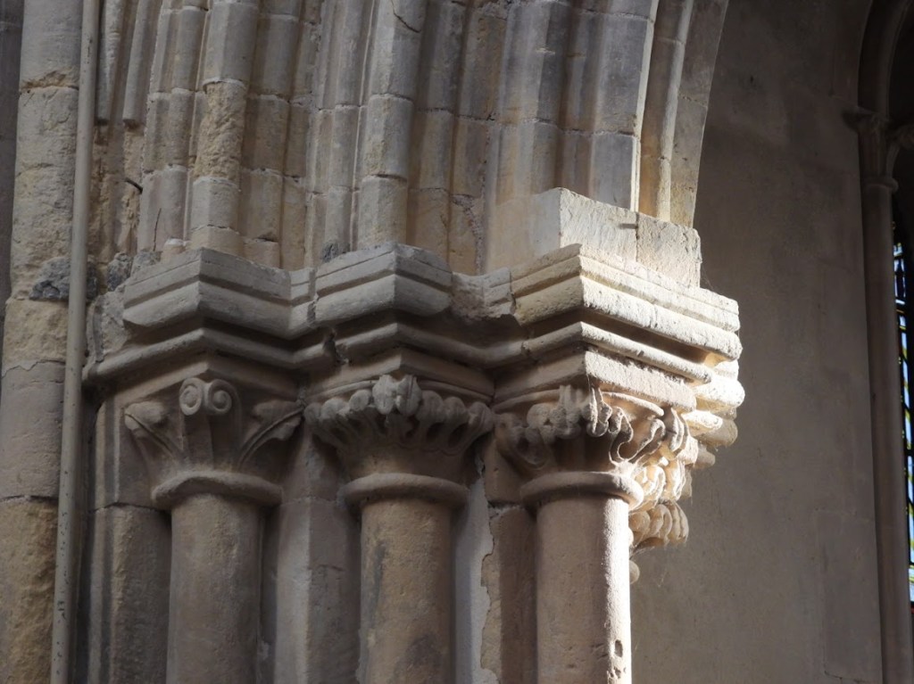 ….in the transitional piers at New Shoreham church the abacus is round, and the foliage begins to assume the Early English type p.55 James Kellaway Colling F.R.LB.A., (1874) Examples of English Medieval Foliage and Coloured Decoration, Taken From Buildings Of The Twelfth To The Fifteenth Century: With Descriptive Letterpress. B. T. Downloadable at https://archive.org/details/examplesofenglis00coll, retrieved 10.12.25