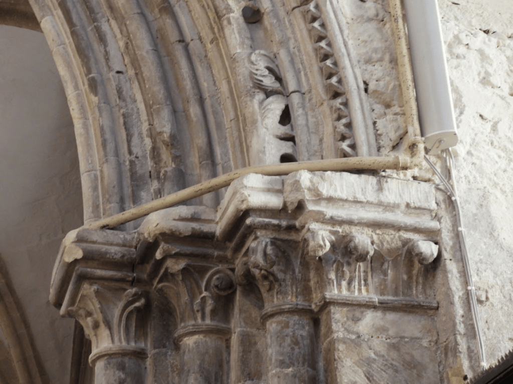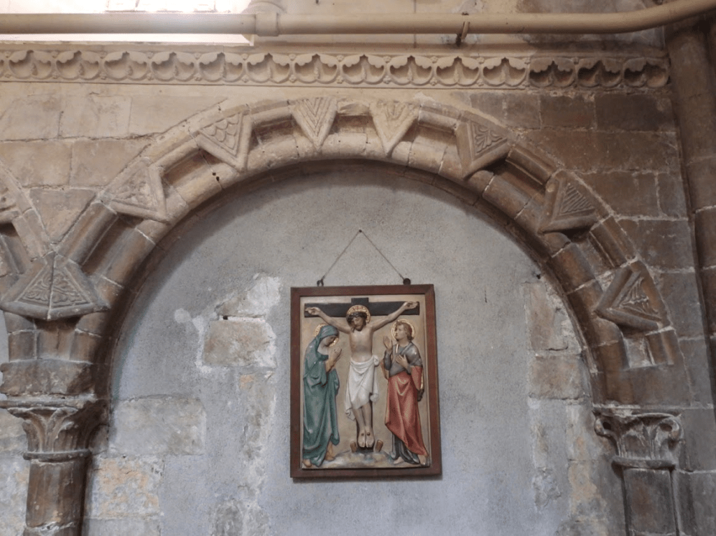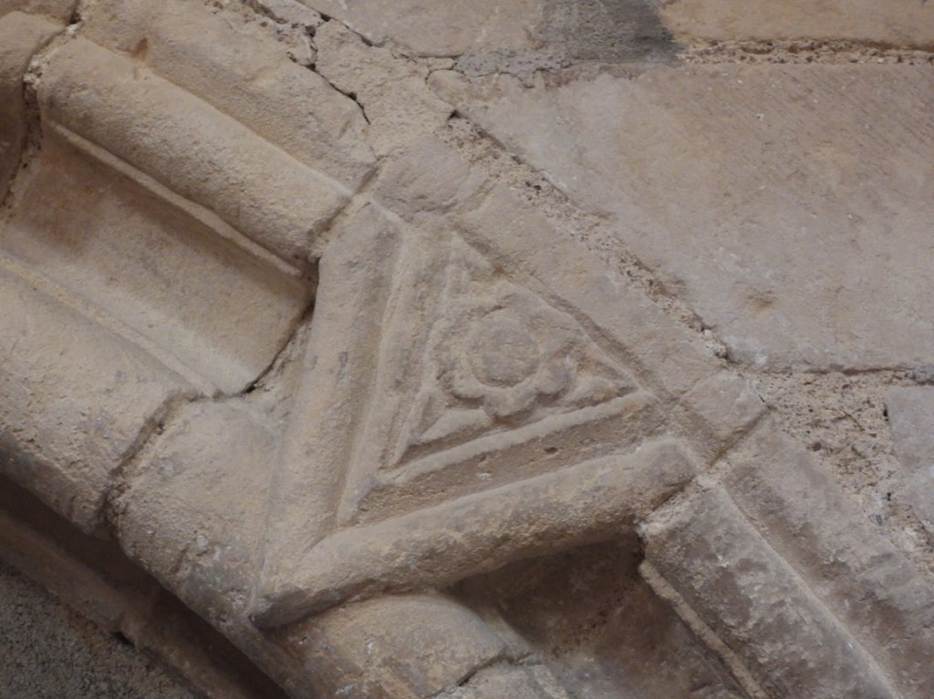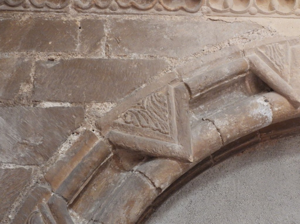 The voussoirs (wedge-shaped stones) of the blind arches are decorated with leaves – but each one leaf is different; showing remarkable creativity by the