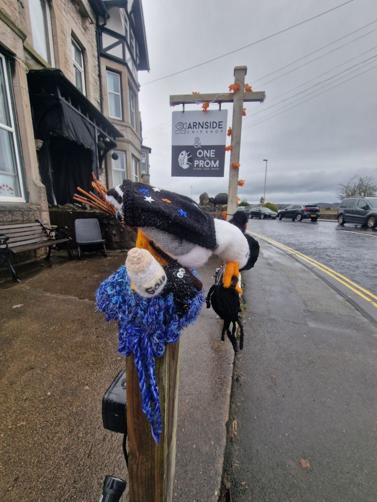 I was welcomed to Arnside by a Herring Gull dressed as a witch eating spiders outside the local chippy.
