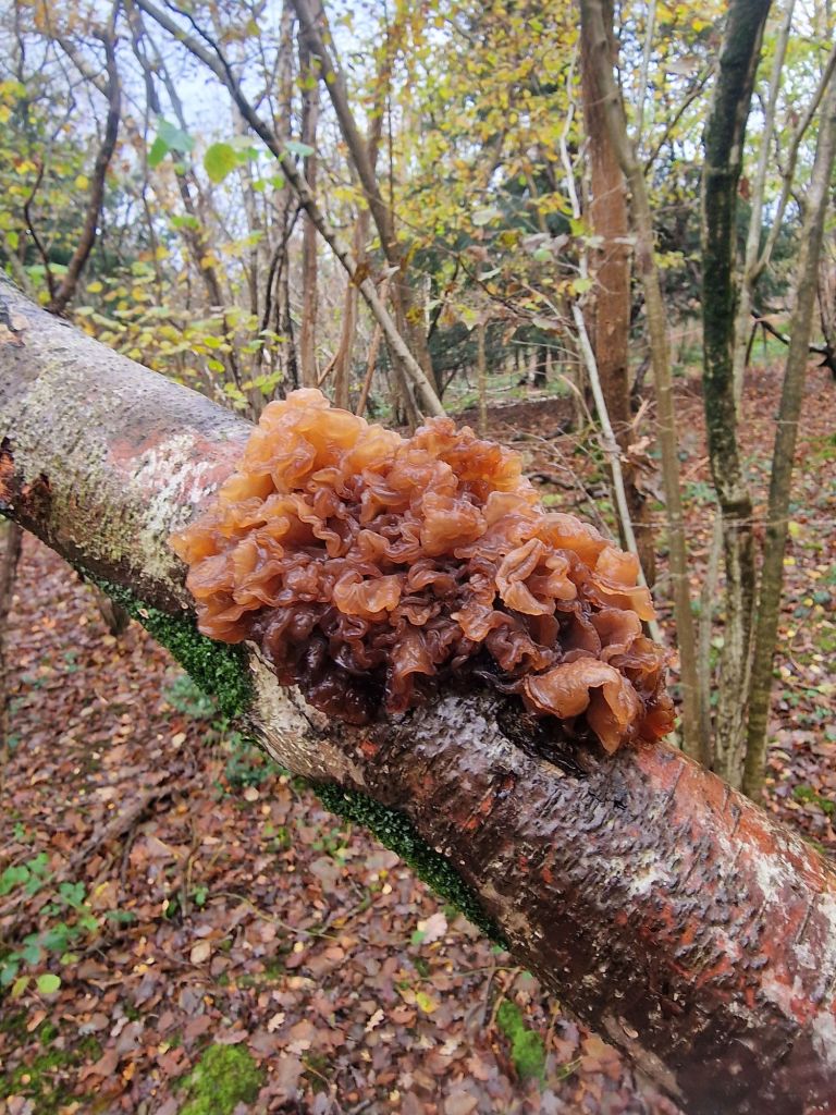 In Copridding Wood, I saw this interesting fungus, Phaeotremella frondosa