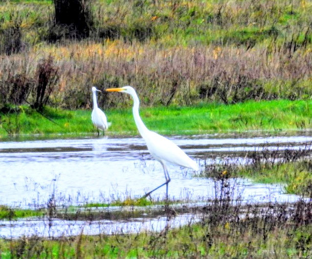 And as I walked out of Grubbins Woods via New Barns, I saw a Great White Egret and Little Egret in foraging in tidal pools