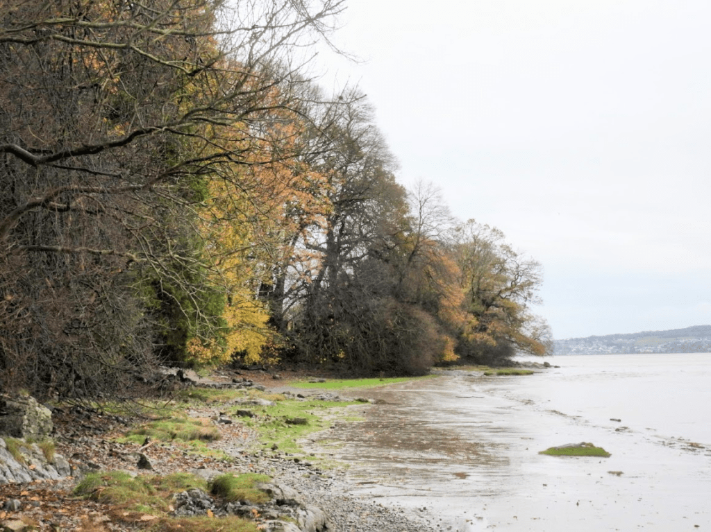 After I walked through the woodland to the east of Arnside, I returned to the north of Arnside, where I had initially entered from the train station. By then the tide had receded sufficiently enough for me to walk along the shoreline in front of Grubbins Wood; and I found the Lancaster Whitebeam
