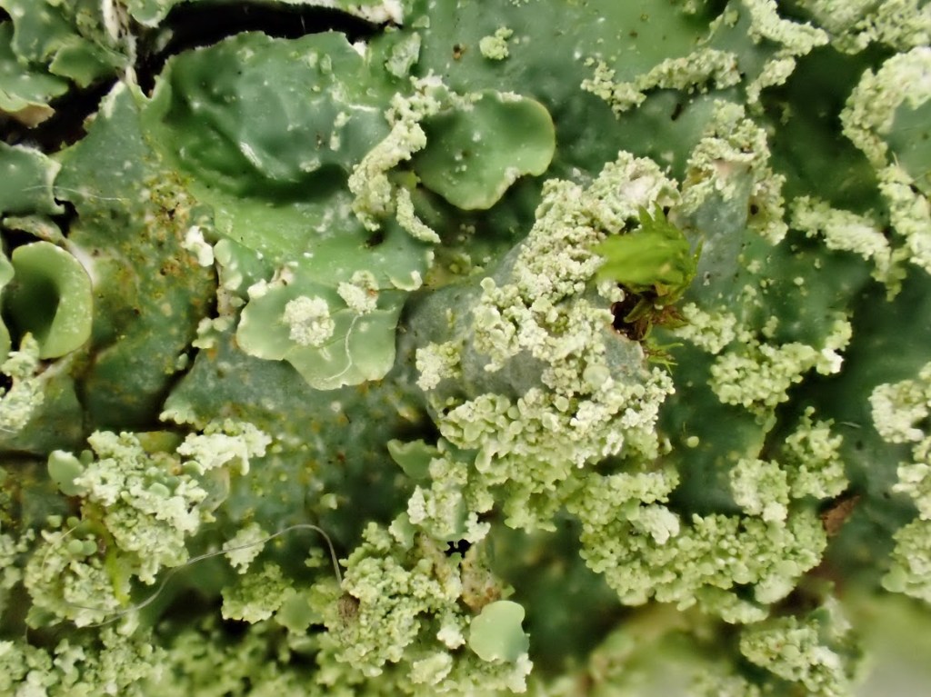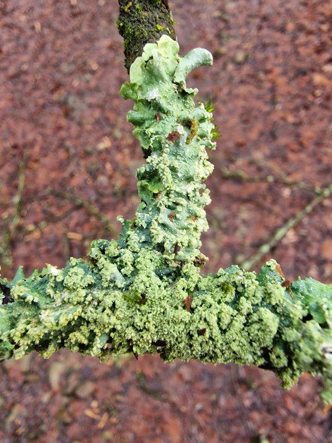 Really pleased to find this. Found it on a twig from a Quercus robur in the ground. This lichen was named after William Borrer, the Henfield naturalist who made the first scientific study of it in early 19th century. It’s only found in the far south. It is very similar to P. jackeri & P. subredecta. It is identified by (a) its abundant tiny pseudocyphellae – tiny white holes in the thallus (body) for gas exchange, (b) white fluffy lumps, which are soredia (vegetative propagules of fungi hyphae and algal photobiont), coming out of soralia (structures that produces the soredia) and (c) pale tipped rhyzines (structures that fix the lichen to its substrate). New hectad record for the British Lichen Society.