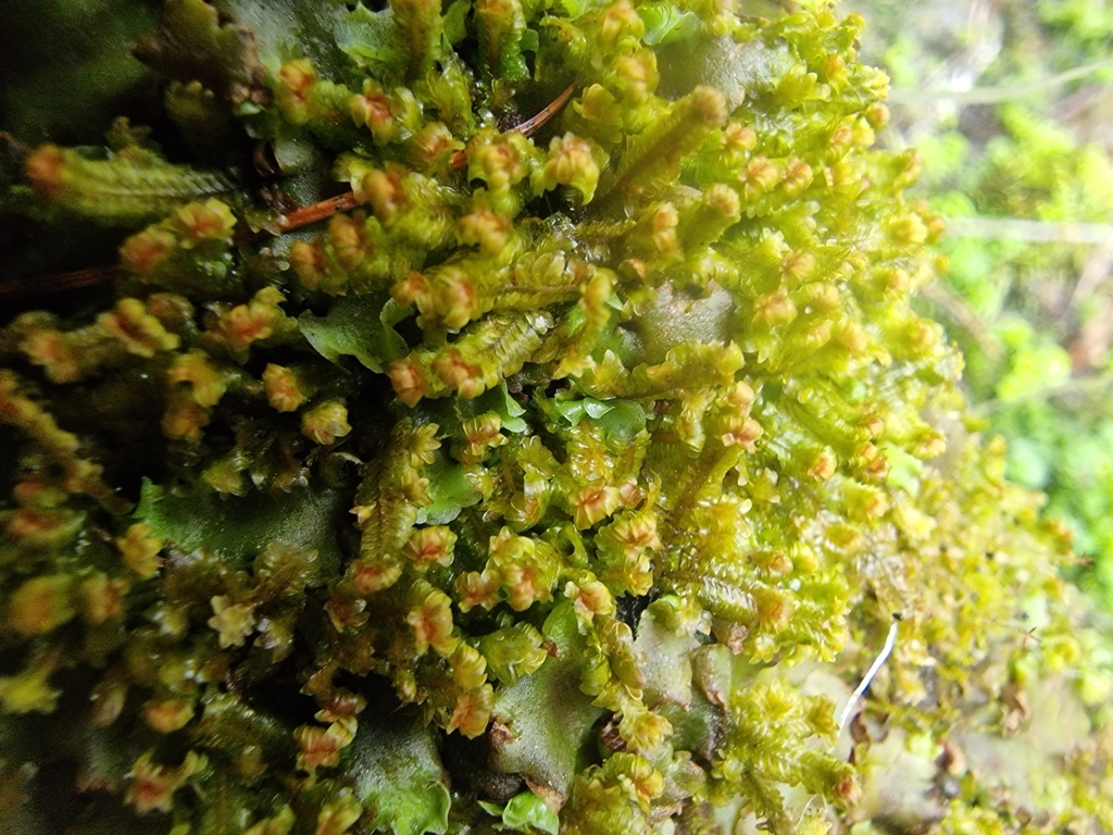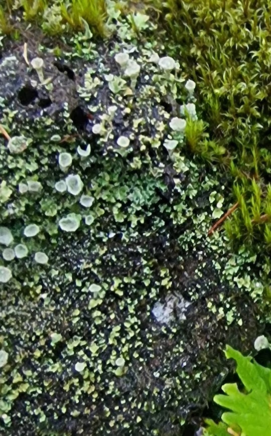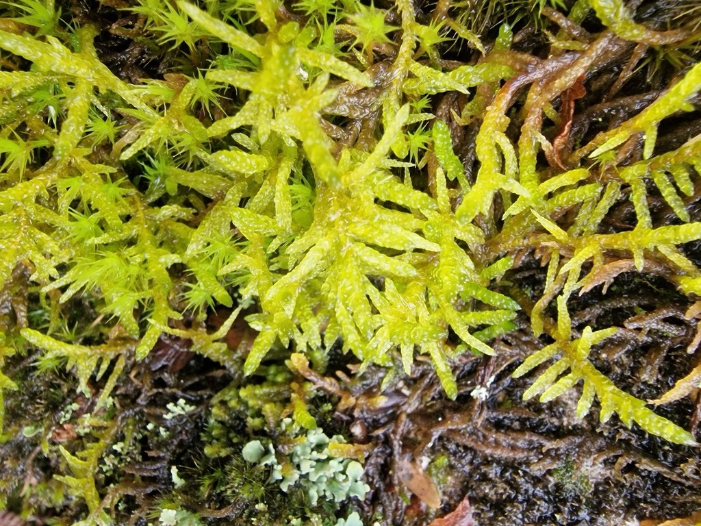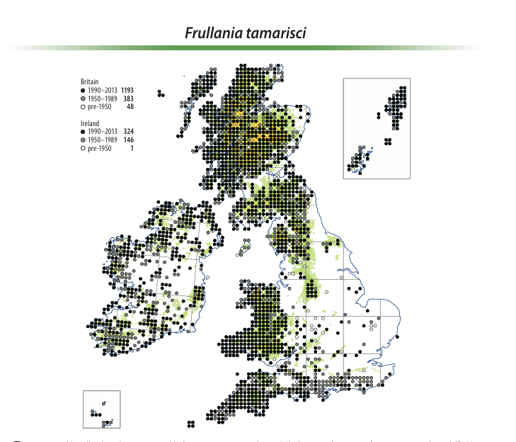 Here the beautiful and common (in North West Atlantic Woodland) liverwort Frullania tamarisci