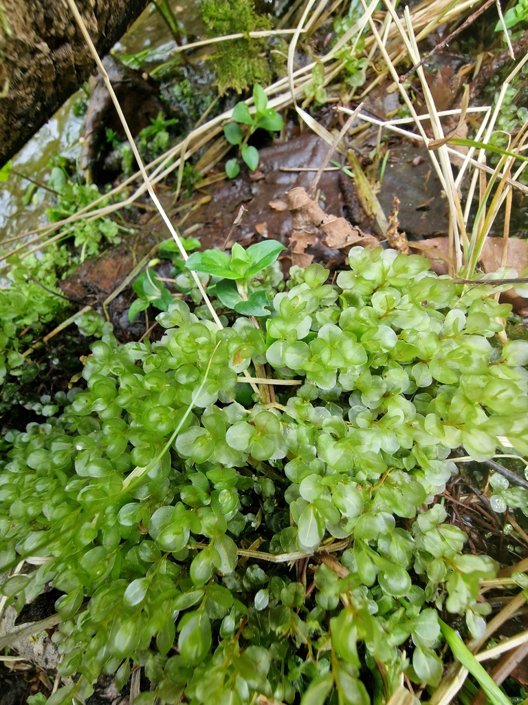 The leaves of Wood-Sorrel, an ancient woodland indicator species, growing though Sphagnum palustre