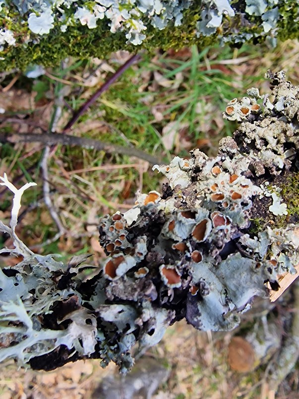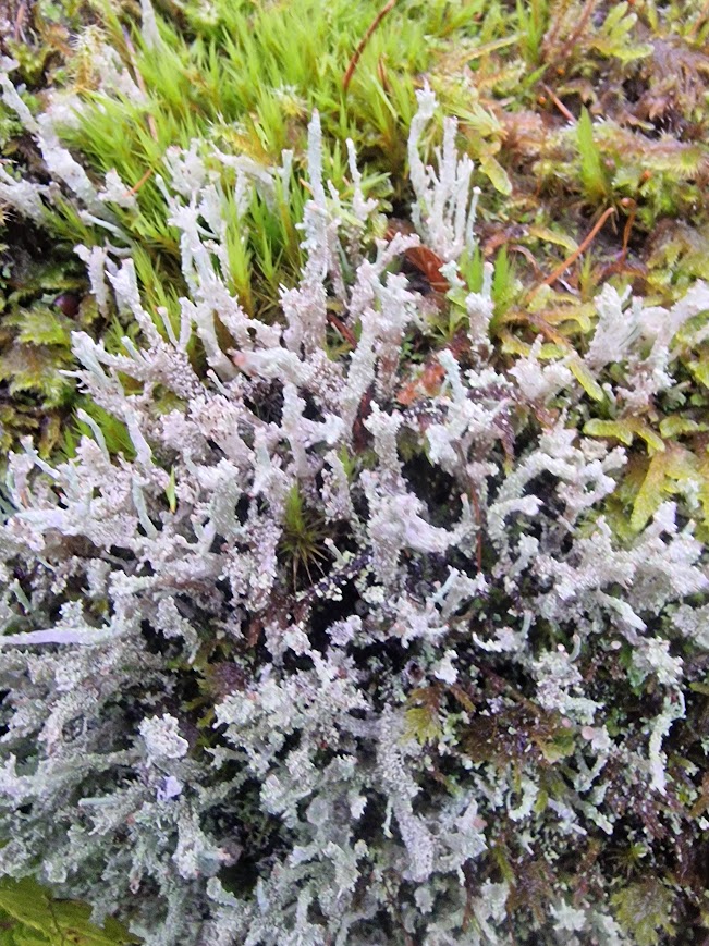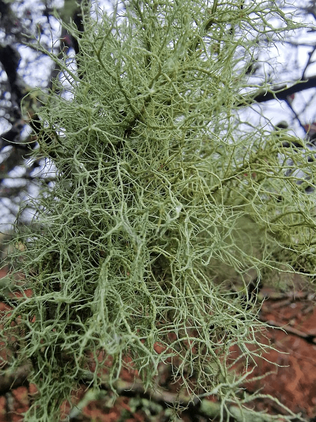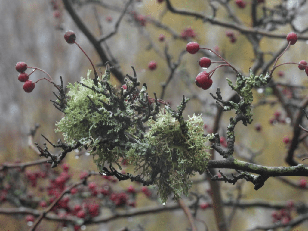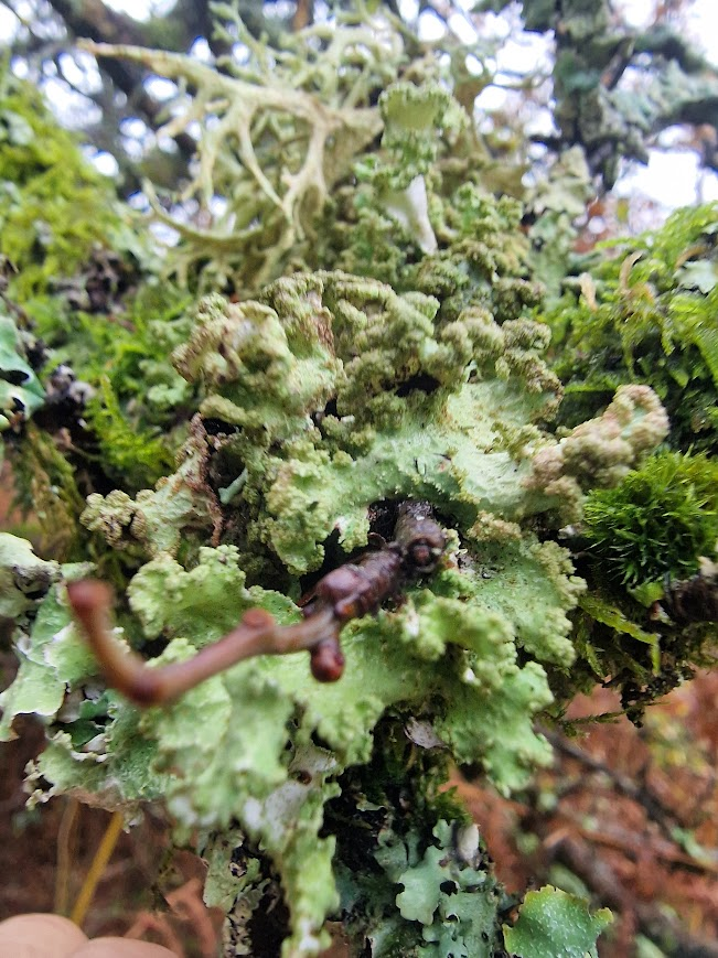Hawthorns; as in Sussex, often have abundant (bit different) lichen. Sussex Hawthorns are dominated by Ranalina spp. lichens with few or no Usnea spp. Upland north-west Hawthorn often have more Usnea. On these hawthorns Usnea floridana is relatively common; it is very rare on South East hawthorns