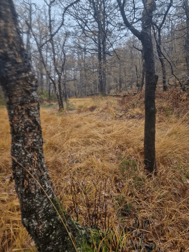Cummaccatta is sparsely wooded with Sessile Oak, Silver Birch, Hazel, Yew, Juniper and Ash.