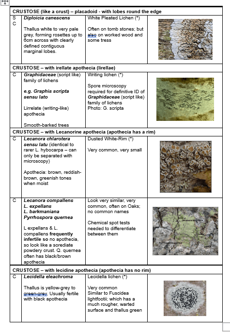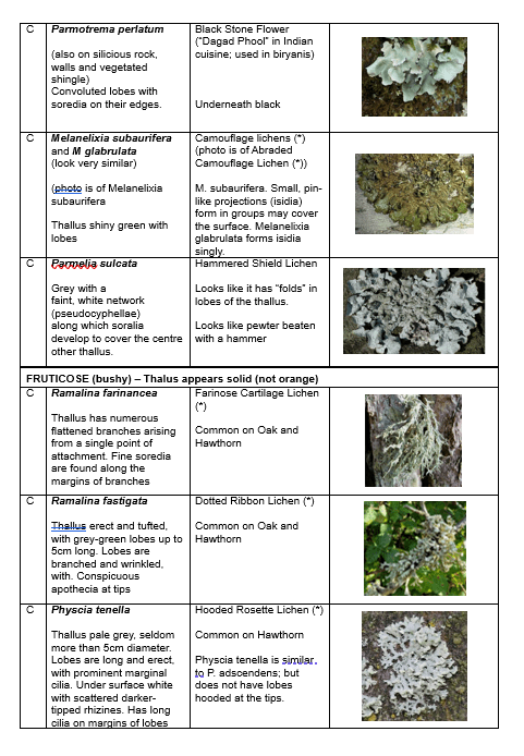 On Sunday morning, I led a similar walk in an East Brighton. I always start with a brief introduction of lichen growth forms and the morphology of lichens, as these are key to identification. (I have copied the handout I use below). The vocabulary of lichens is hard, and mostly in scientific Latin. But it is heart warming when a participant, complete new to lichens, after an hour of lichen looking, can spot a tiny Hyperphyscia adglutinata that I hadn’t seen, next to a Lecidella elaeochroma, that she identified. She didn’t know what the lichen was but said: “Are those soredia on it.” Give people a hand lens and a bit of information and magic occurs!