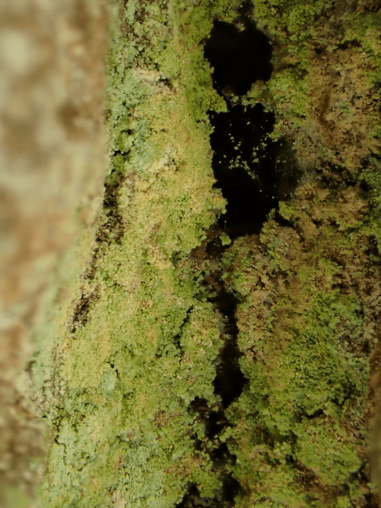 I initially got very excited because I thought it may be the rare pin lichen Chaenotheca chrysocephala; which had been recorded on a specific Quercus robur nearby, but it wasn’t!