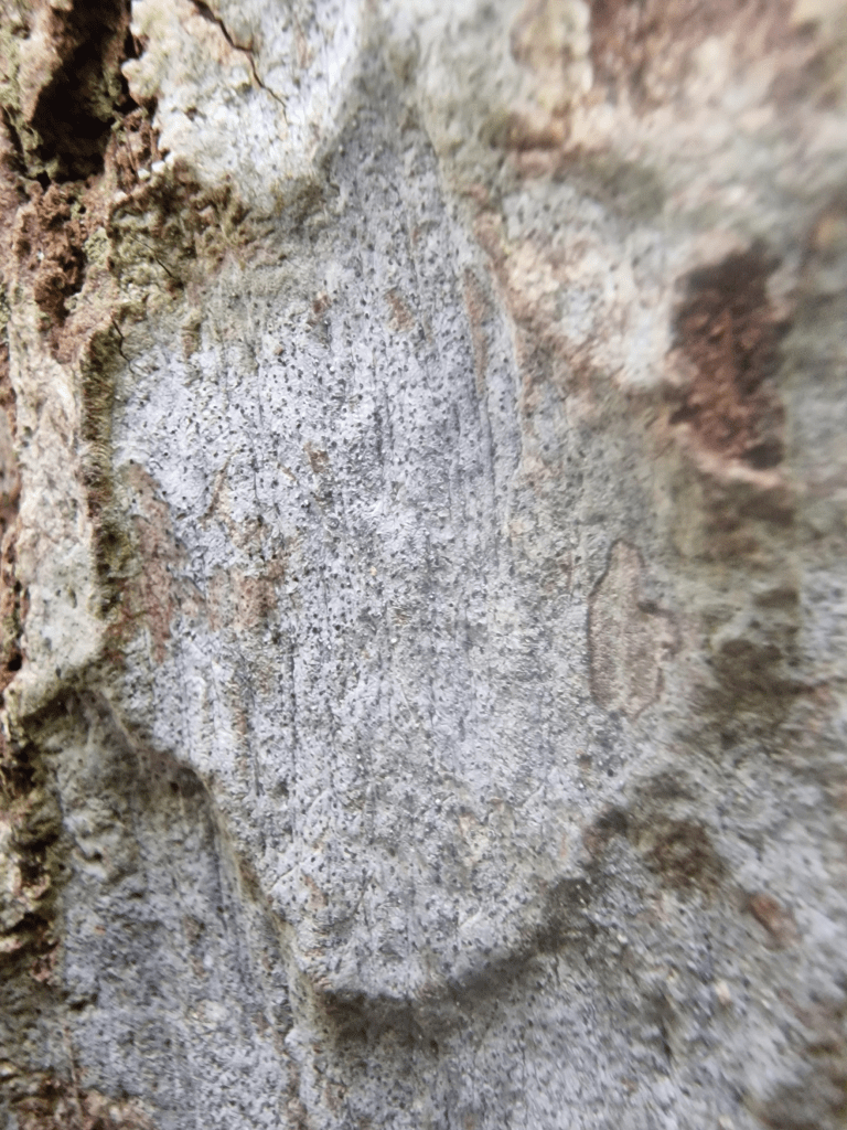 In Walk Wood there were a number of notable maiden Hornbeams, Carpinus betulus in the woods. Normally, when I see Hornbeams in Sussex, they’re coppiced and have few lichens (mostly Pertusaria leioplaca and the Graphidetum scriptae association with Graphis scripta). But the Hornbeams in Ashburnham Park were much older non-coppiced maidens, which seem to have lichens of thePyrenuletum nitidae association (this is listed by James et al (1977) a continental association, the tail end of which is seen on ancient Beech and Hornbeam in south east England ….probably a separate southern oceanic community characterised by Pyrenula chlorospila with Enterographa crassa and Pyrenula macrospora) as well as of the Graphidetum scriptae association British Lichen Society Lichen Communities These hornbeam mosaics require more time than I had available to identify all their species.