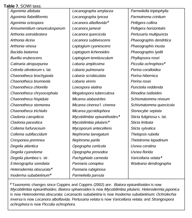 Southern oceanic old growth woodland lichen assemblages are outstandingly well-developed in the south of Britain, especially from North Wales south to Devon and Cornwall and east to the New Forest (Map 2) (Rose and James 1974; Sanderson 2010). The range of lichen communities of interest is greater than in the rainforests, consisting of: base-rich bark (Lobarion pulmonariae and Agonimion octosporae), acid bark (Parmelion laevigatae), smooth mesic bark (Graphidetum scriptae and Pyrenuletum chlorospilae), rough mesic bark (Pertusarietum amarae), dry bark and lignum on veteran and dead trees (Lecanactidetum Lichen communities, such as the Lobarion pulmonariae and Parmelion laevigatae are found in particular niches, such as base-rich bark or dry overhanging rock. Several communities can co-occur in a habitat, or even on a single tree. Neil Sanderson, Tim Wilkins, Sam Bosanquet and David Genney 1018 Guidelines for the Selection of Biological SSSIs. Part 2: Detailed Guidelines for Habitats and Species Groups Chapter 13 Lichens and associated microfungi. Joint Nature Conservation Committee 2018